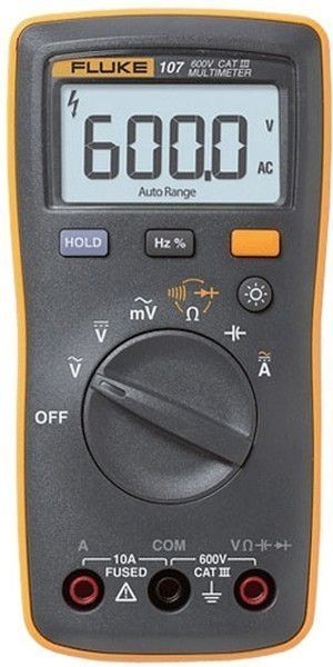 Fluke 107 бюджетный цифровой мультиметр представляет собой самый компактный измерительный прибор, который с легкостью помещается на ладони, имеет, как и остальные приборы Флюк, высокую надежность и точность, а также чрезвычайно прост в использовании. Маленький мультиметр Флюк 107 подойдет для специалиста, которому очень важна надежность и безопасность, не выходя за рамки бюджета. Корпус прибора очень прочен- прибор выдерживает падение с высоты 1 метр.